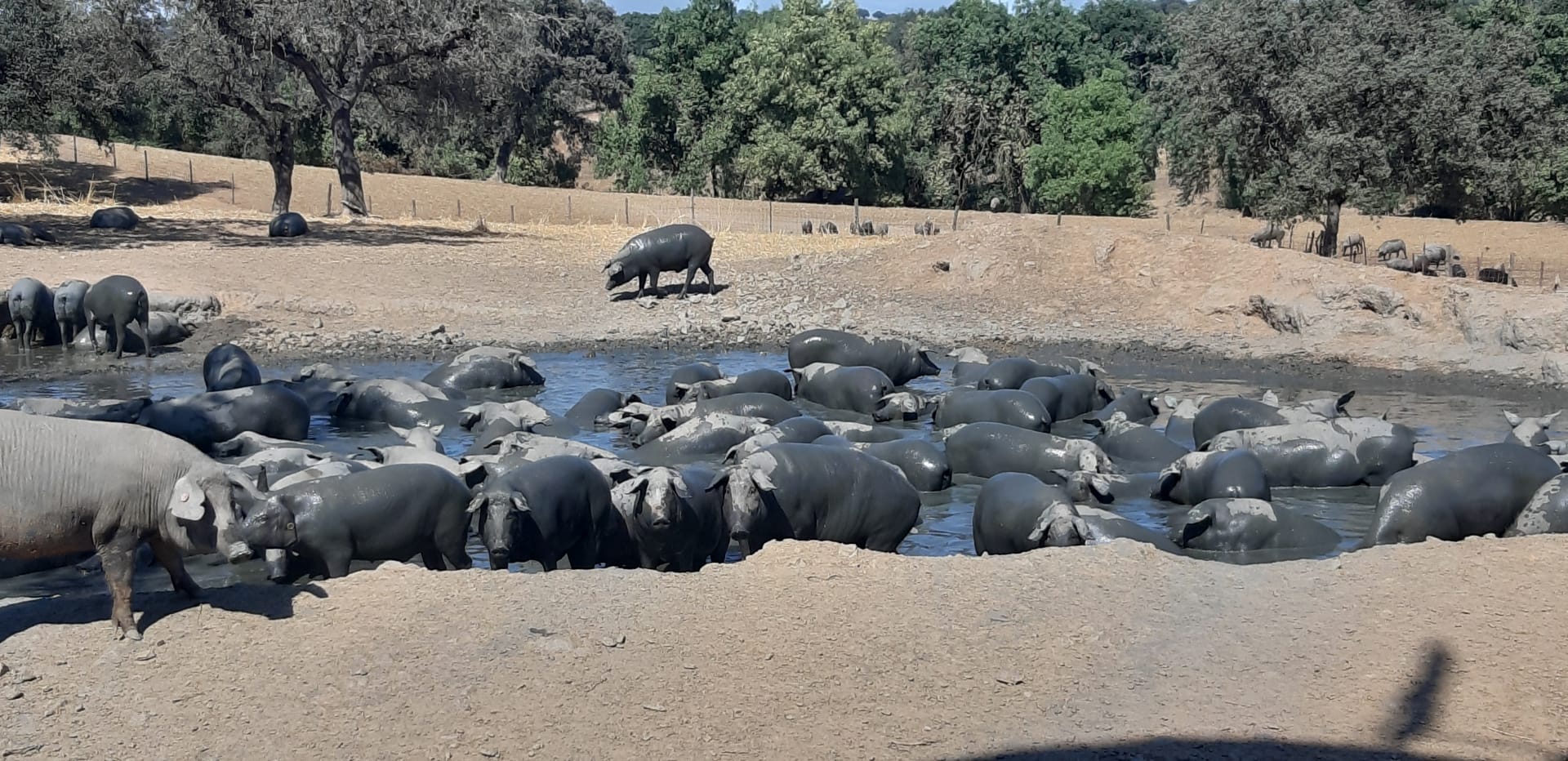 Nuestros cerdos entran en la explotación ecológica con 30kg o 3 meses de vida. no se pueden tratar con ningún tipo de medicamento, por eso es fundamental un minucioso cuidado de los animales. A día de hoy tenemos una producción propia de 1600 cerdos ibéricos ecológicos.