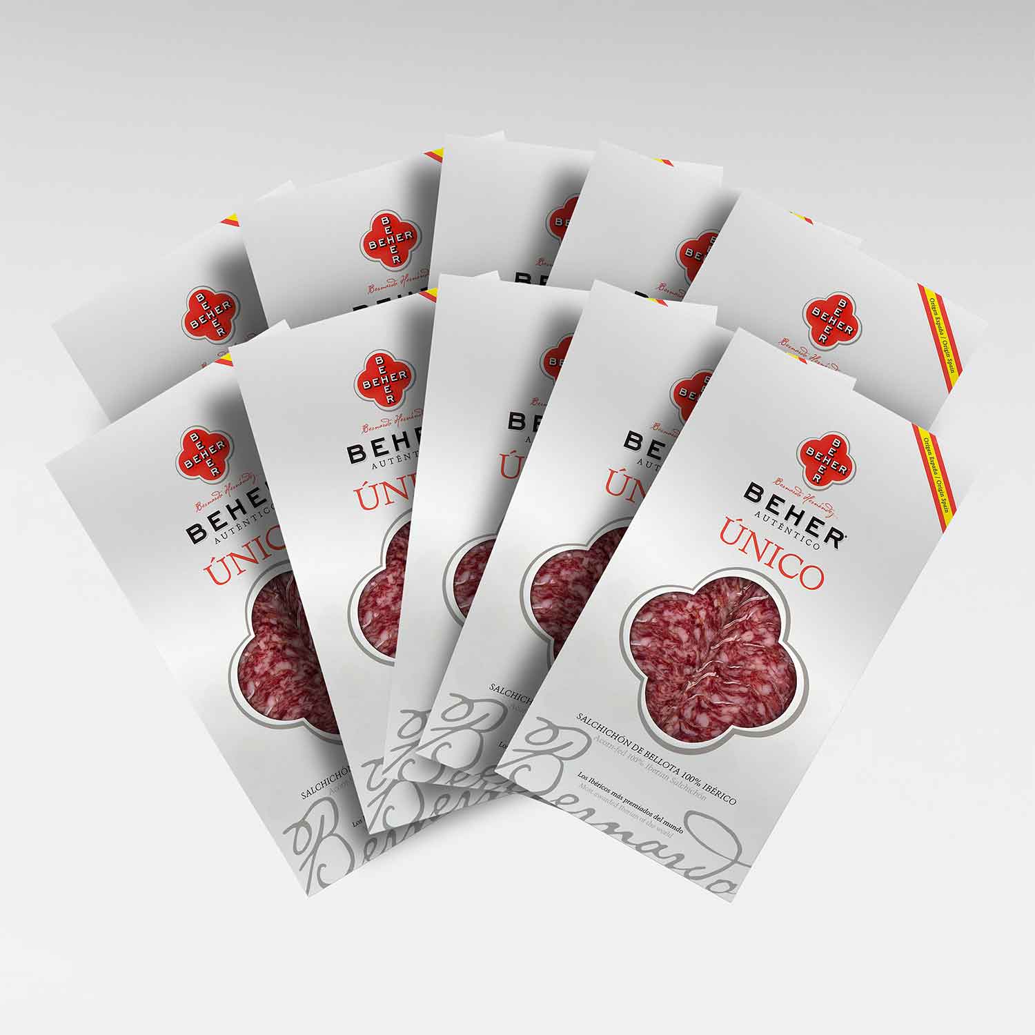 El salchichón cular de bellota 100% ibérico en lonchas se presenta en paquetes de 100 g, perfectos para compartir o disfrutar individualmente.